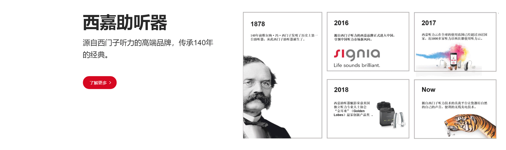金華市康全醫(yī)療器械有限公司專業(yè)經(jīng)營(yíng)西嘉助聽器,西嘉助聽器源自西門子聽力,傳承140多年的經(jīng)驗(yàn)技術(shù),在聽力研究、助聽器研發(fā)和生產(chǎn)等領(lǐng)域享有盛譽(yù)。其足跡遍布全球100多個(gè)國(guó)家和地區(qū),不斷創(chuàng)新,竭盡推動(dòng)聽力行業(yè)發(fā)展。西嘉助聽器繼承了西門子聽力逾百年的科技精髓,擁有強(qiáng)大的研發(fā)創(chuàng)新能力。我們將利用這些先進(jìn)的產(chǎn)品技術(shù)為金華地區(qū)聽力損失患者提供專屬個(gè)人的聽力解決方案,為您解決聽力上的煩惱,重回有聲的精彩聽世界。